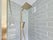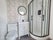 Upstairs there is a large bathroom, complete with shower, vanity sink and touch light mirror.