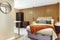 Spacious living includes: modern desk with stylish chair, Smart TV mounted on the wall, double bed with luxury bedding, chest of drawers, cosy bedside cabinets; walking through the room into an area suitable to house accessories or furntiure of your choice. This area also includes ample worktop space, a double wardrobe and beautifully crafted velvet chair. The en-suite is elegantly refurbished with walk-in cubicle shower, toilet & mosaic effect flooring.