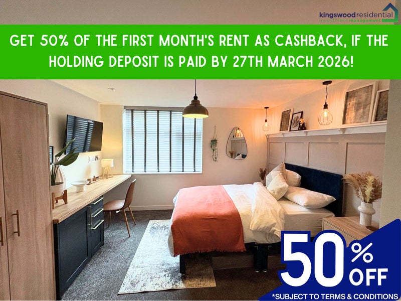 **Get 50% of the first month's rent as cashback if the holding deposit is paid by 27th March 2026!**