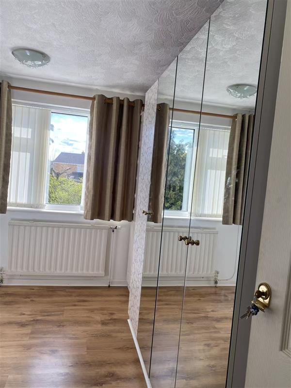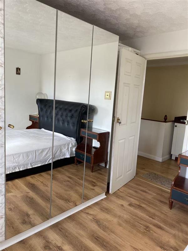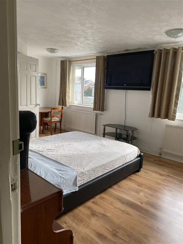 The room features a private en-suite toilet, a king-size bed, and a large, fitted wardrobe with full-length mirrors with a Garden view. All bills are included, along with Wi-Fi, for your convenience.