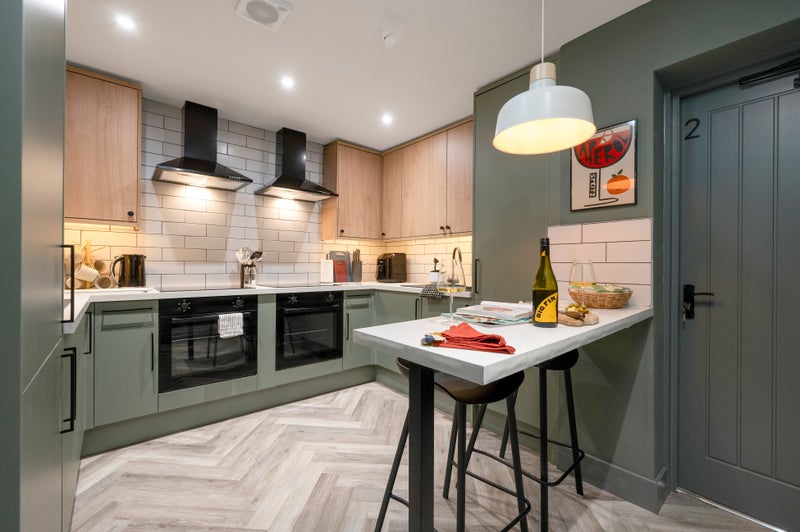 Each bedroom has its own private en-suite, and three rooms also include private kitchenettes — ideal for professionals who value extra independence.