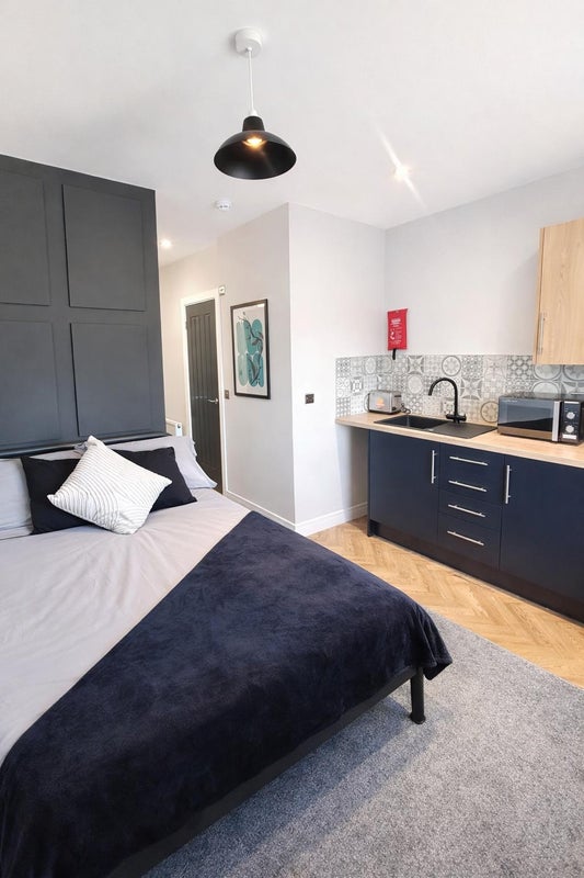 This stylist rooms offer everything you need for a comfortable stay. It includes a cozy double bed and a dedicated workspace by a large, bright window, perfect for studying or working from home.