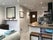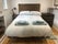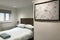 The sleeping area has a double bed, bedding, with two pillows for each guest. Bedside tables, draws, shelving, hairdryer, lamp and a comfy chair.