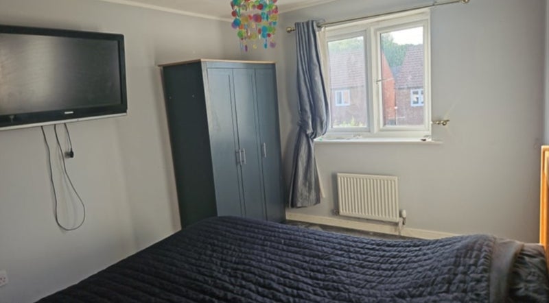 Large double room in a 2 storey town house, there's a bathroom on the middle floor, working professionals preferred, all tenants work full time so the house is very peaceful, it's a new build, really nice home in a lovely location, train station at the bottom of the street aswell as the highstreet is really close, there's a shop and a newsagents just 10 minute walk away aswell as s Subway sandwich shop, Rebecca Adlington swimming bath and gym just 8 minutes walk, small holding deposit. The room is quite big, loads of space, Inc a double 40cm deep mattress and a triple wardrobe. The TV is no longer in the room