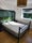The room is furnished with a double bed, a chest of drawers, two nightstands and a desk. It has a built-in wardrobe with plenty of storage.