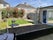 Garden with home grown strawberries, cherry tomatoes and plums and outside storage for bikes etc.