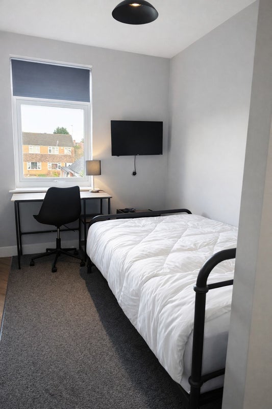 ✔️This stylist Studio room offers everything you need for a comfortable stay. It includes a cozy double bed and a dedicated workspace by a large, bright window, perfect for studying or working from home.
