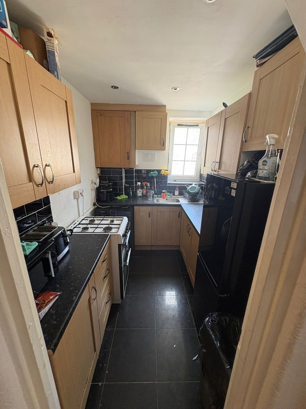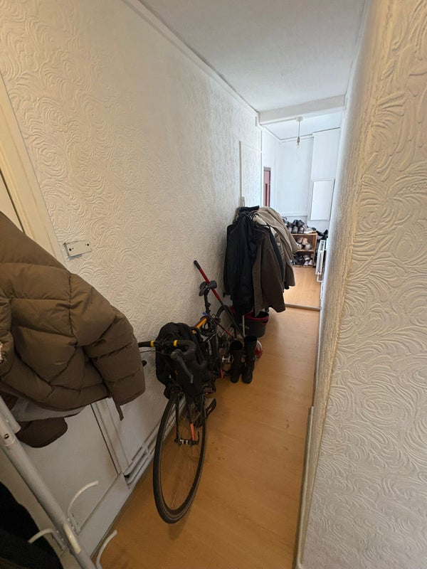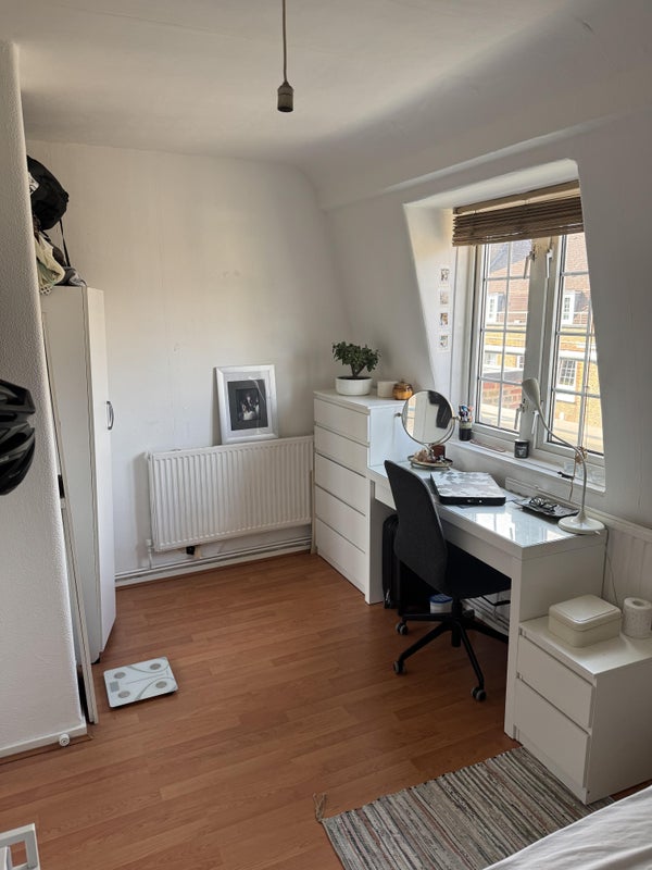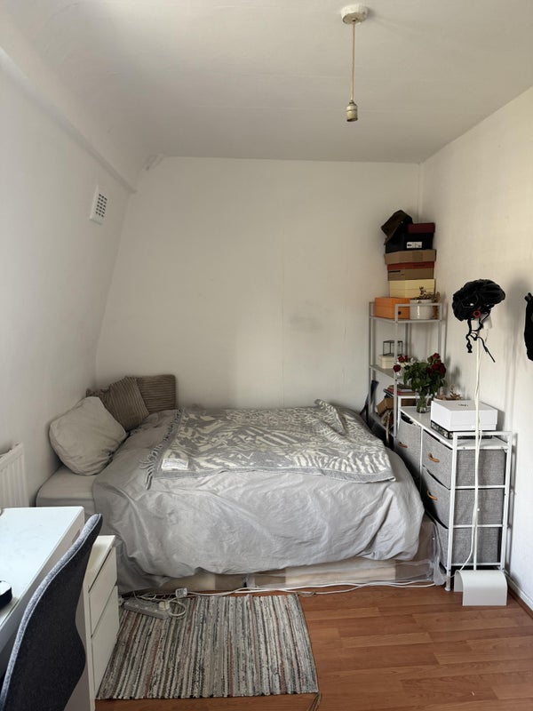 The flat is split over two floors and has 4 bedrooms, 1 shared bathroom, a kitchen, and a living room with lots of natural light. The room comes furnished with a bed, cupboard and wardrobe. The extra furniture shown in the pictures is mine, but I’d be happy to sell some of it for a small price if wanted.