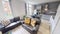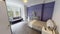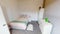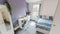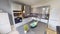 Two bathrooms and a open plan kitchen and lounge area.