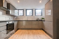 The apartment provides ample natural light with open plan living space with dining table and chairs. The kitchen benefits from a range of wall and base cupboard units and includes free standing fridge-freezer, electric oven and induction hob. One double bedroom and a modern bathroom is neutrally decorated with a modern suite.