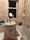 Shared living room / dining room & modern tiled bathroom with bath/overhead shower