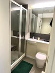 Both bedrooms have their own bathroom, one is ensuite and the other one has bathroom right next door (with an extra bit of wall covering the entrance from the bedroom so it feels like an ensuite too). One bedroom has king sized bed, an en-suite bathroom and a storage cupboard, as well as inbuilt wardrobe and plenty of storage under the bed. There is space for a desk in the bedroom or also space for desks in the living room if you prefer to work from there.