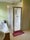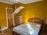 The room is freshly painted and furnished with: large shelf unit, large chest of drawers, wardrobe, desk and chair, beside table and double bed with brand new mattress.