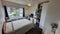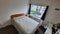 The double bedroom is furnished with a double bed, mattress, computer desk, chair, mirror, lamp, large wardrobe