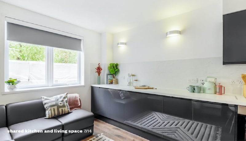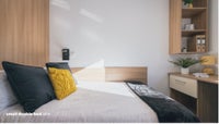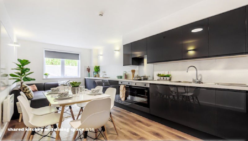 Each room comes with a small double bed, space to study and plenty of storage space. Each six bed apartment comes with a large modern kitchen and shared living space for dining with friends or flatmates. Each kitchen comes fully equipped with two fridge freezers, two ovens, a microwave and ample cupboard space.