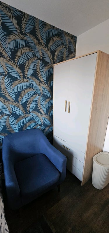 Single bed, mirror, 2 door closet, Sofa, plenty of storage-drawers.