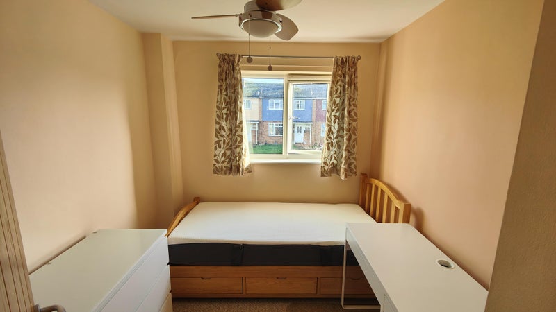 Recently painted double bedroom available in terraced house in Arncott village located 4miles (10mins drive) outside Bicester, Oxfordshire. Oxford is 20mins drive away.