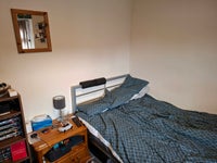 5 bedrooms, 2 bathrooms. Garden and patio with bed and outdoor walk through for safe, locked bike storage. 1 female and 4 males (one of which is me). 1 smoker.