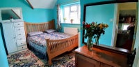 ⭐LARGE BEDROOM 🛏️15ft x 12ft (4m x3.2m) KING SIZE BED. £2500 William Morris rugs/curtains. V QUIET OVERLOOKS LARGE QUIET PEACEFUL REAR GARDEN💐