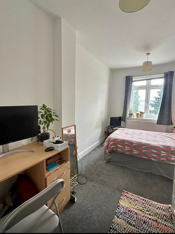 This very large house is spread over three floors, with two kitchens, three bathrooms with showers and an additional cloakroom. The double bedroom available is on the first floor overlooking the garden.