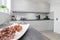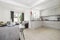 Open plan Living, Dining, Kitchen, Large rear Patio space, washer and Dryer, integrated Fridge, ample cupboard space, and modern kitchen and appliances.
