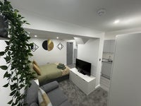 The flat is fully furnished and features its own private entrance, a modern fitted kitchen, an open-plan living and sleeping area, and a contemporary en-suite bathroom. The property is fully equipped with a TV, microwave, washer dryer, fridge, toaster, and kettle, providing everything needed for comfortable, modern living.
