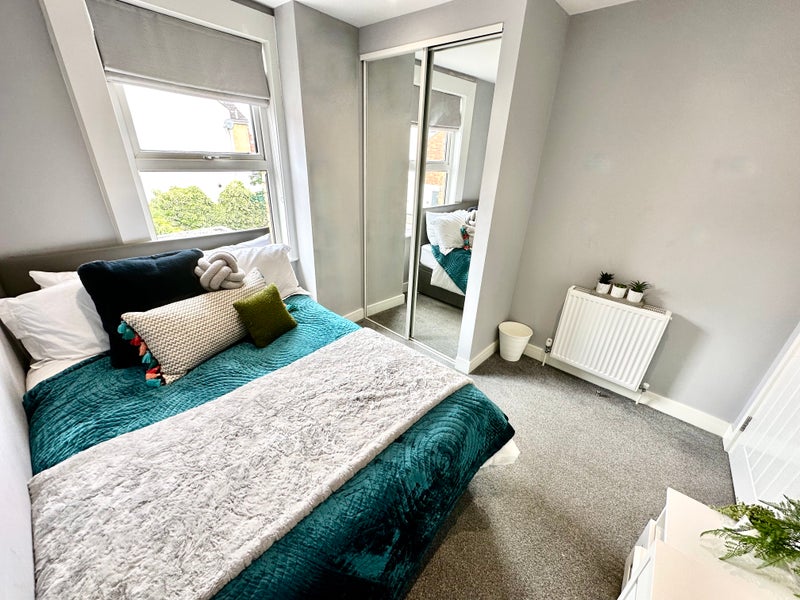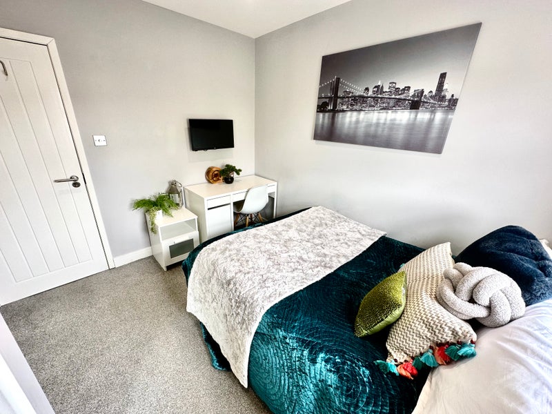 🏠 This is a lovely double bedroom in a great house share in Old Town. The room has a desk and chair, a fitted mirrored wardrobe, a 22-inch SMART TV (with an Ethernet port for gamers), a standard double bed with storage under the bed, a bedside table, and a large window to let the light in. You also share the main bathroom with only one other person. This room is ideal for someone on a budget. What more could you ask for? 😃