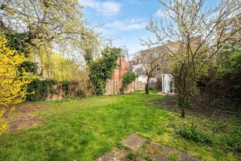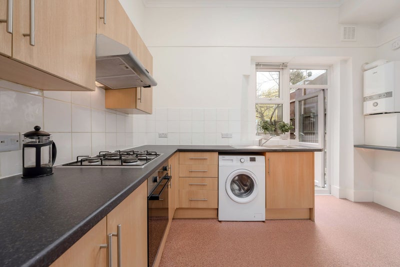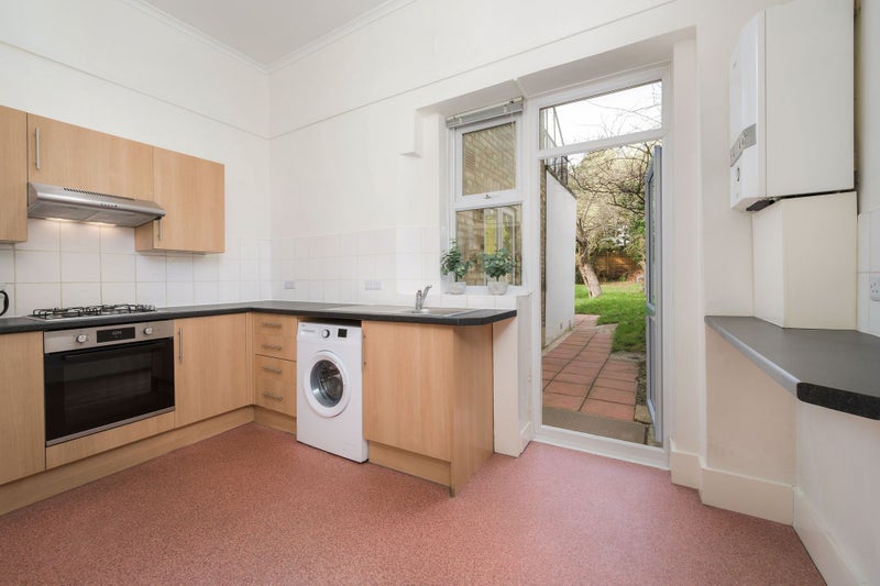 This charming property has been freshly painted throughout and boasts a bright and spacious reception room, perfect for relaxing or entertaining. The well-appointed eat-in kitchen opens directly onto a substantial private garden, creating an excellent indoor-outdoor living experience. The flat features two good-sized double bedrooms, with the principal bedroom also benefiting from direct access to the garden, as well as a modern family bathroom.