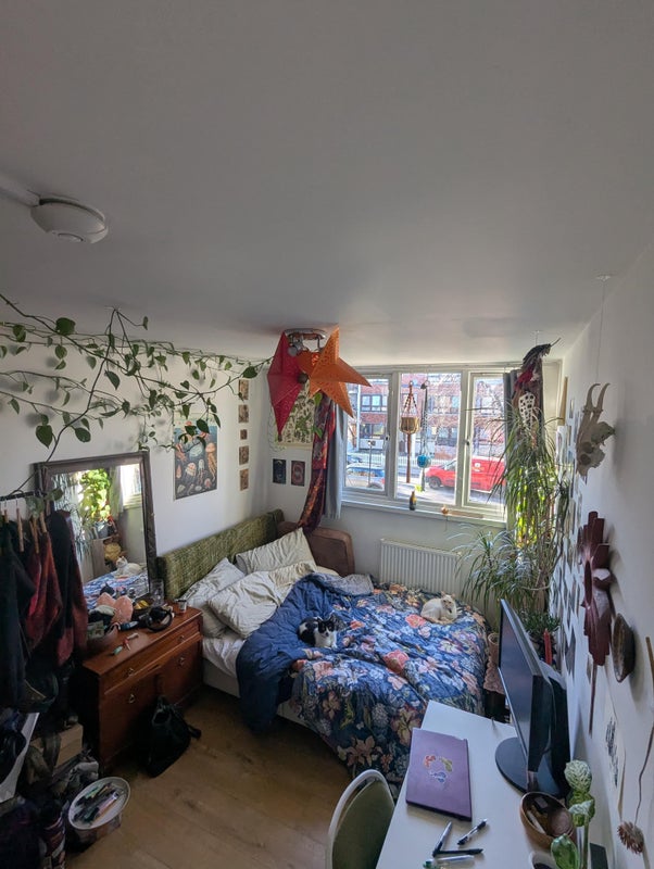 4 flatmates, 3 cats, large bedroom, large living room and kitchen. Creative household that enjoys food, plants and films. Veggie and lgbtq+ friendly!
