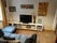 Shared dining-living room and a gym in the garden with tumble dryer.