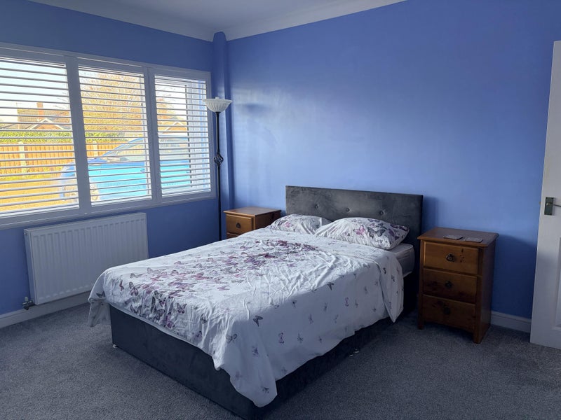 2 Newly decorated rooms plenty of natural light, new carpet storage drawers under bed chest of drawers large private bathroom, shared large kitchen utility room with washing machine and tumble dryer back garden and off street parking in front .