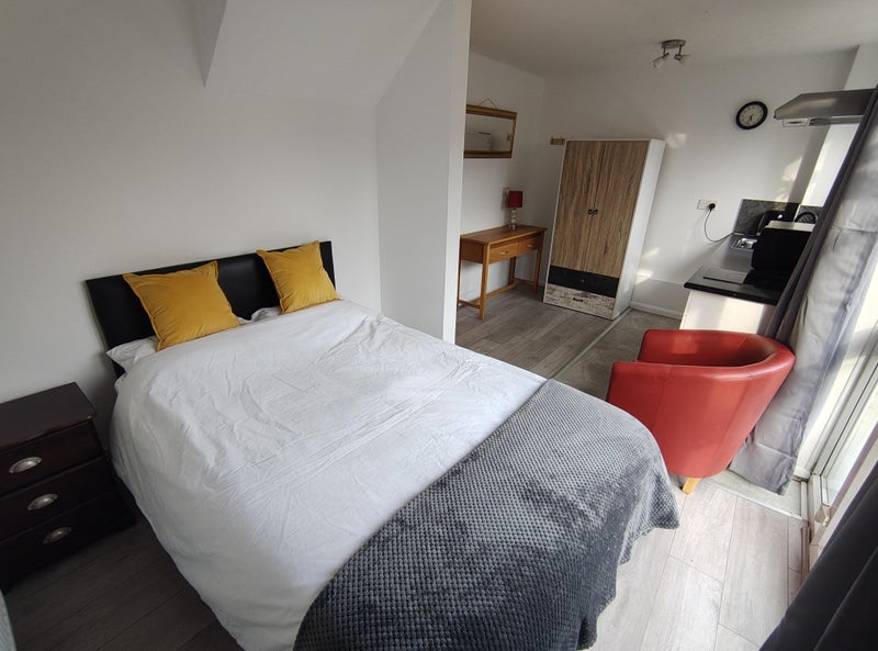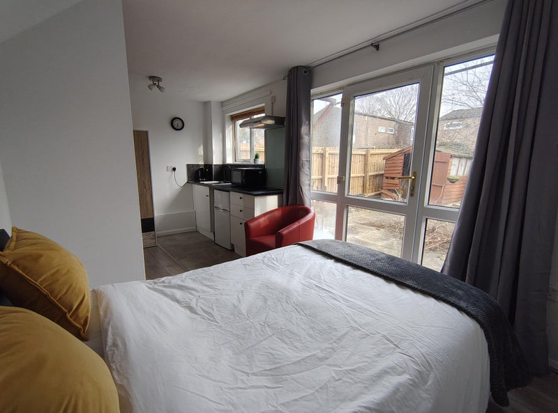 Room 2 downstairs with kitchenette and private access door to garden as well as main house