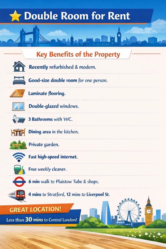*🏡 Double Room for One Person — All Bills Included | Plaistow ,E13 0LP.