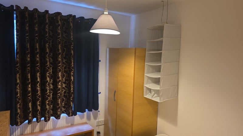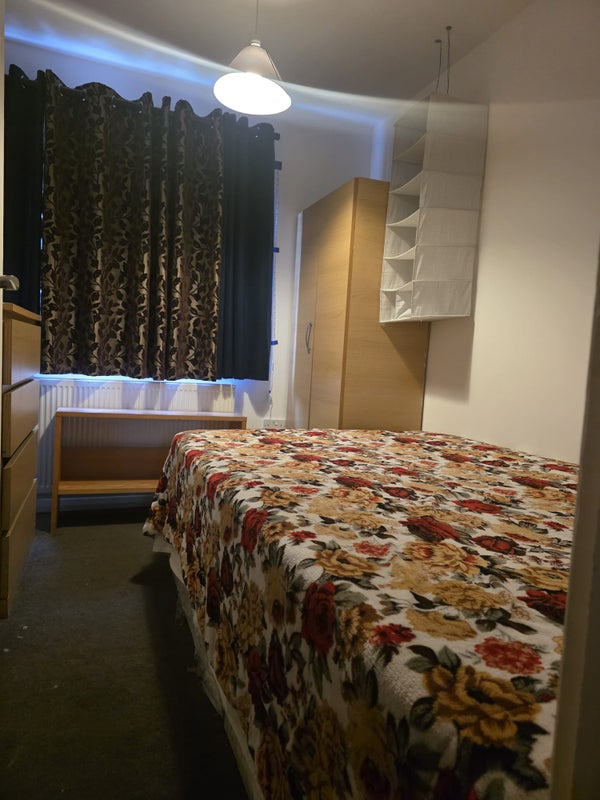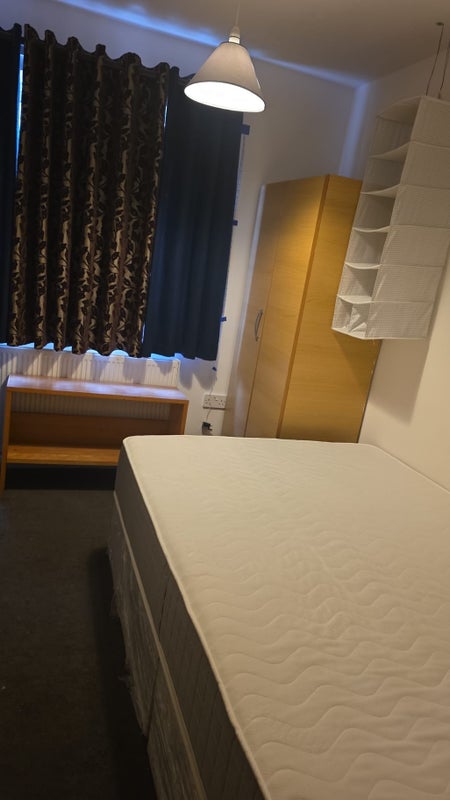 double room painted white clean and comfy furnished with bed draws and wardrobe bills are paid for balcony included clean air