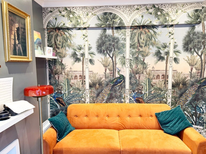 • Shared living room/office with sofa bed, a library of books and lots of plants.