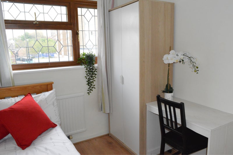 The en-suite room is located on the first floor facing the rear of the property with an amazing view of the River Thames. The room comes fully furnished with the bed, wardrobe, chest of drawers, desk with the chair and plenty of storage space.