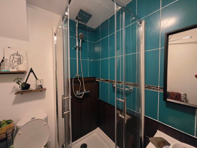 Flat has a large living room and kitchen, where I have 2 house rabbits (hence the no pets). Some additional. storage throughout the flat.
