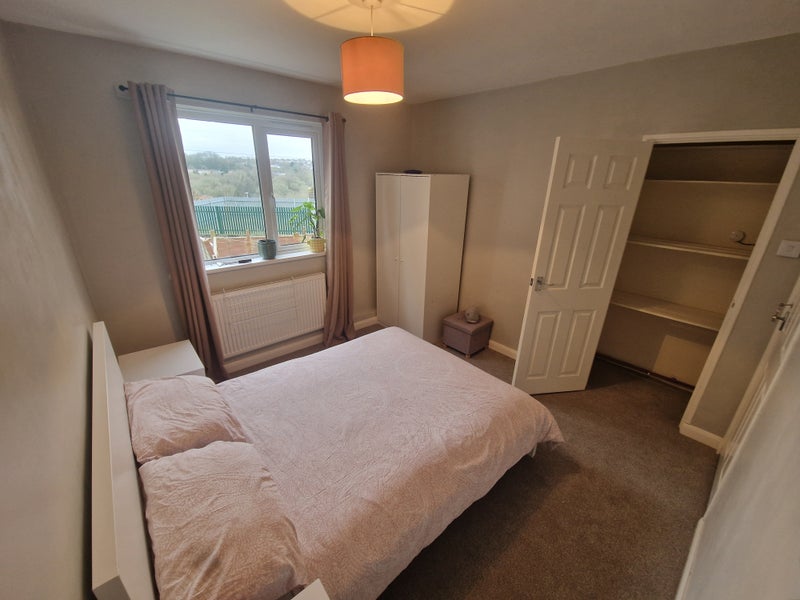 The room is a medium-sized double bedroom with a large window so plenty of natural light. The flat features a large and bright living room, a decent sized kitchen, a bathroom with separate W. C., and a large rear garden with decking – ideal for relaxing or enjoying a cuppa outside!