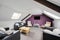 Upstairs, the living area, occupying the entire loft space, has two leather sofas, comfy chairs and flat screen TV with Freeview.
