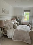 The bedroom is fully furnished and the house is equipped with everything you need. There is a large kitchen with all the mod cons (dishwasher, washer dryer, large double oven range cooker, microwave etc) dining area, lounge and private sunny garden.