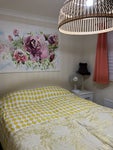 Double bed side tables and lamp. Hanging rail for clothing.