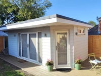 Modern cabin fenced away at the end of our garden for total privacy, with private access via a side gate. Fully Furnished, Double bed, fridge, un suite with shower and toilet, fast wifi, smart tv, private garden, patio, outdoor seating.