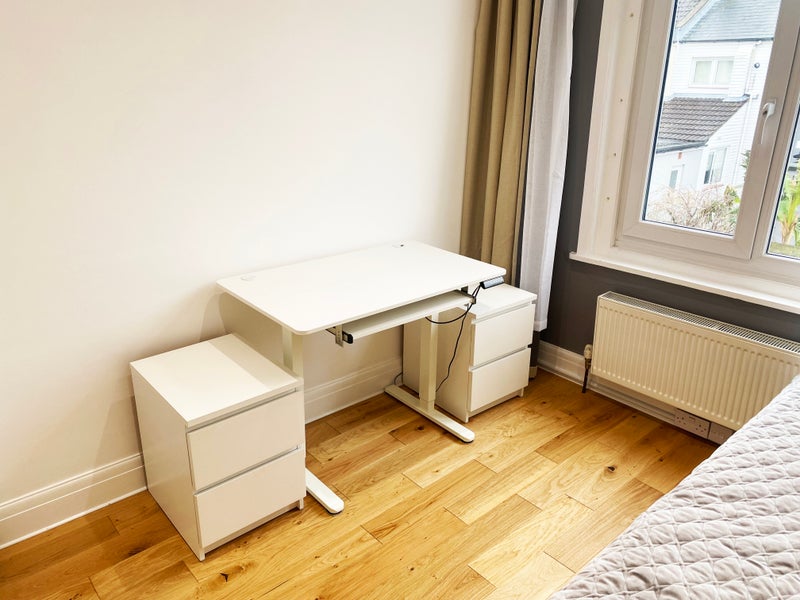 - Modern white desk & drawer unit – ideal for studying or remote working