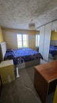 Bright, spacious double bedroom with private ensuite bathroom. This well-presented room is ideal for professional occupancy and features a large double bed with fitted mattress, built-in mirror wardrobes offering good storage, and a private ensuite with shower enclosure, sink, and WC. Room has windows with shutters for privacy and light control, fresh and clean carpet flooring, and includes a desk and 2 bedside cabinets for personal items.