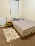 The available bedroom is downstairs, close to the kitchen and a big bathroom overlooking the garden. The room comes furnished with a comfy double bed and wardrobe. It also comes with either a small desk and a bookcase shelf.
