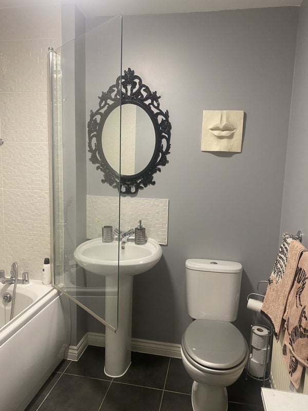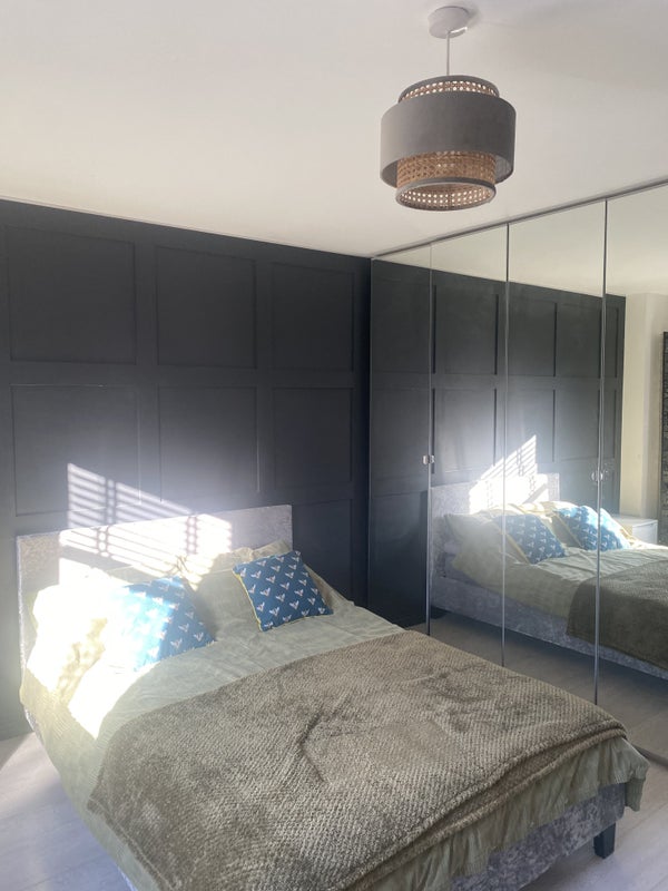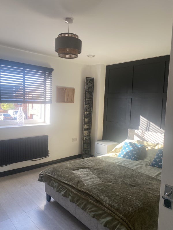Beautiful bright double room with central heating and fitted wardrobes, double bed dressing table and chest of drawers.