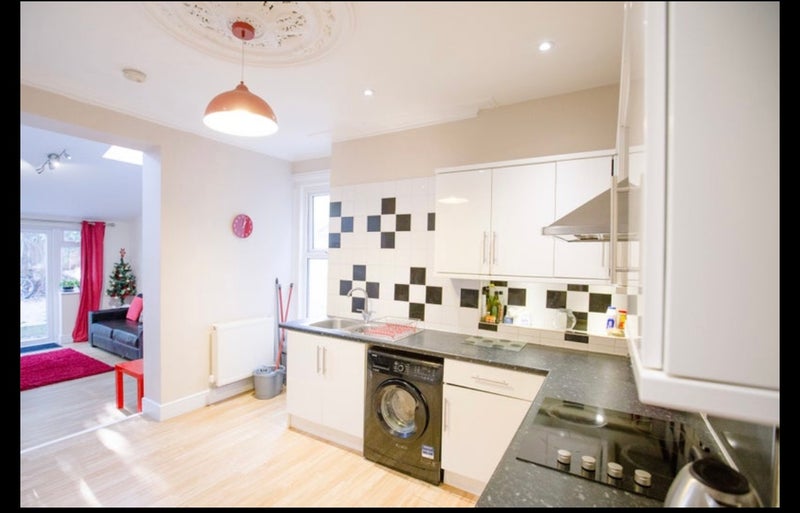 - Large open plan modern kitchen, lounge area with sofa and TV – All cookware and utensils provided