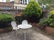 Shared sitting room, kitchen with dining table and patio garden.