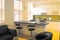The open plan lounge/kitchen has wooden floors, ample high gloss white cupboards, two fridge/freezers, oven, hob, microwave convection and dishwasher. There is a breakfast bar with seating for six, leather sofas, coffee table, comfy chairs, and a large flat screen freeview TV.