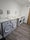 Kitchenette area: Wall and base units with Fridge, sink and standalone cooker.
